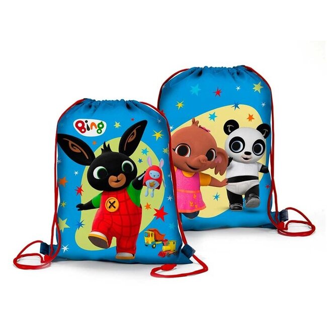 Deze handige tas die met trekkoorden dicht gaat is ideaal voor je zwem, gym of sportkleding. De tas heeft een vrolijk uiterlijk met afbeeldingen van verschillende figuren uit Bing en op beide kanten staat een andere afbeelding.