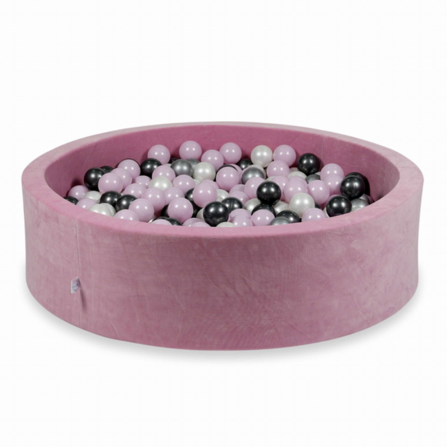 Hypoallergener Bällepool für 400 Bälle aus Soft Velvet Rosa. Stabil, sicher und leicht zu reinigen für stundenlangen Spielspaß. Lesen Sie mehr.