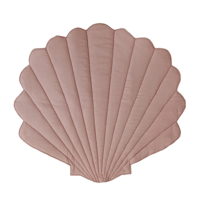 Rosa Spielteppich in Muschelform aus Leinen. Ideal zum Krabbeln, Spielen oder Entspannen in einem stilvollen Kinderzimmer. Lesen Sie mehr.