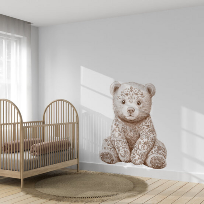 Dekorativer Wandsticker eines sitzenden Bären, ideal fürs Kinderzimmer. In zwei Größen erhältlich für ein warmes, verspieltes Ambiente. Lesen Sie mehr.