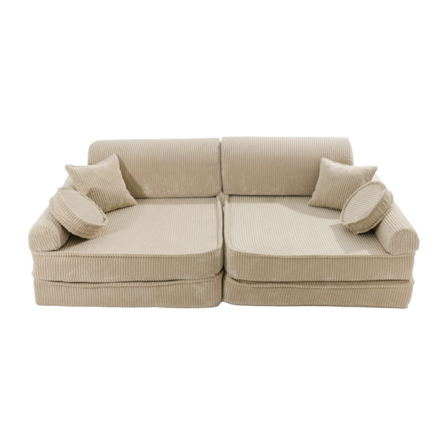Our beige corduroy children’s sofa by Meowbaby combines comfort, style, and creative play. The modular design allows children to create their own play area, encouraging imagination, motor skills, and independence. Perfect for bedrooms or playrooms.