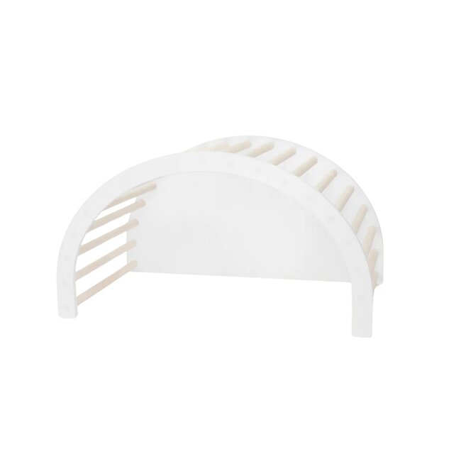 The Fitwood Natural-White Climbing Arch combines the warm birch wood of the natural model with fresh white straps for a modern, playful look. This multifunctional climbing arch encourages children to climb, rock, and explore every day. Narrower rungs provide extra safety for young children, while the straps keep the cushion securely in place. The new wedge accessories allow the arch to be locked in position, and optional felt pads protect both the floor and the arch.