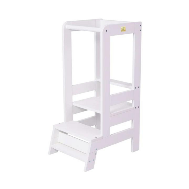 Sturdy wooden learning tower in white, perfect for safely involving children in the kitchen and daily activities. Read more.