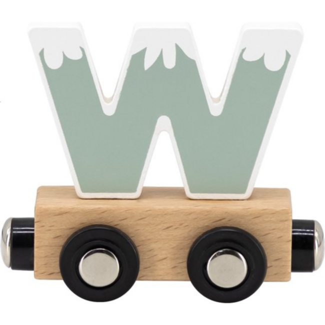Green wooden wagon with the letter W, magnetic connection for combining with other letters. Read more.