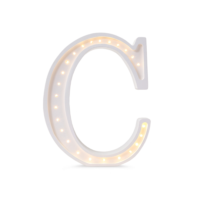 La lampe lettre Little Lights C apporte une touche chaleureuse et personnelle dans toutes les chambres d’enfants. Parfaite comme veilleuse, élément décoratif ou partie d’une collection complète de lettres.