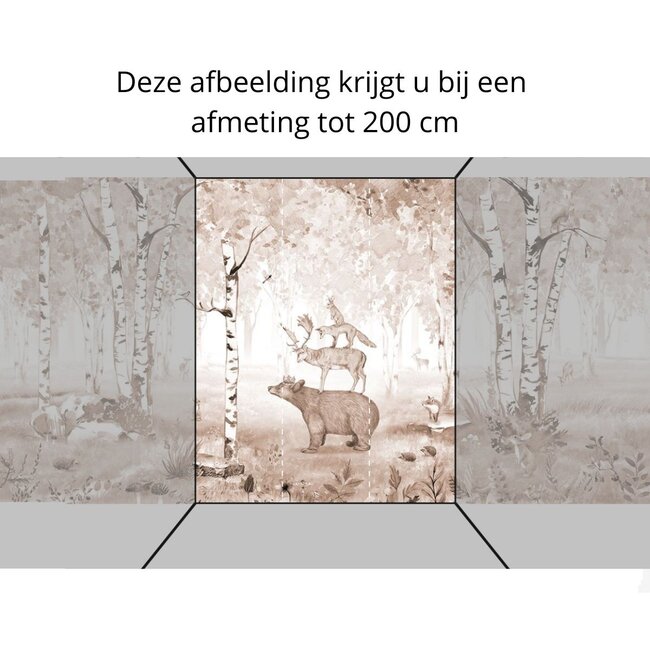 Papier peint photo intissé taupe avec motif forêt ludique. Idéal pour une chambre naturelle et fraîche. Lire plus.