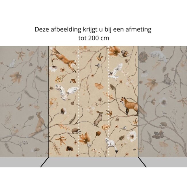 Des branches élégantes, un feuillage subtil et des animaux de la forêt délicatement illustrés composent ce motif harmonieux. Le style dessiné à la main apporte du caractère tout en conservant une ambiance calme et intemporelle.