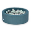 Piscine à balles en velours côtelé bleu avec balles assorties. Parfaite pour un espace de jeu confortable et sécurisé. Lire plus.