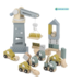 De set bevat een kraan, 6 werfvoertuigen, een pallet, 13 bouwblokken en wegsignalisatie. Dit zorgt voor urenlang speelplezier en stimuleert de creativiteit, verbeelding en oog-handcoördinatie van je kindje.