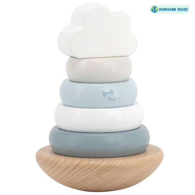 De houten ringen en het topblok zijn ontworpen om gemakkelijk vast te pakken door kleine handjes. Dit zorgt ervoor dat uw kindje zelf aan de slag kan met het stapelen en spelen, wat zijn of haar creativiteit bevordert.