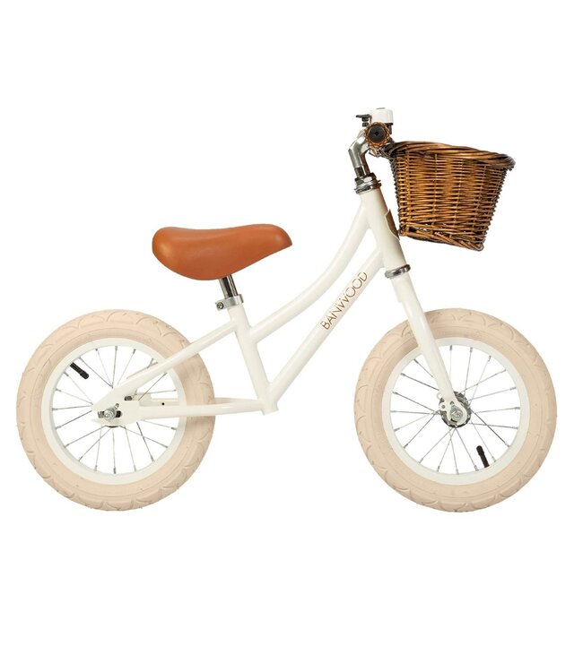 Deze stijlvolle Banwood loopfiets in wit combineert comfort, veiligheid en tijdloze vintage uitstraling. Het stevige stalen frame in zacht wit geeft de fiets een klassieke look – ideaal voor jonge kinderen die leren balanceren en sturen.