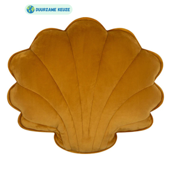 Als het tijd is voor een rustmoment, is dit zachte schelpvormige kussen in mosterdkleur perfect om lekker mee te knuffelen. Het brengt niet alleen comfort, maar voegt ook een speelse en elegante touch toe aan elke kamer.