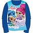 Op dit mooie shirt staat een mooie afbeelding van Shimmer en Shine samen met hun lievelingshuisdieren Tala en Nahal. Het shirt heeft blauwe mouwen en achterkant en er zitten leuke glitters in verwerkt