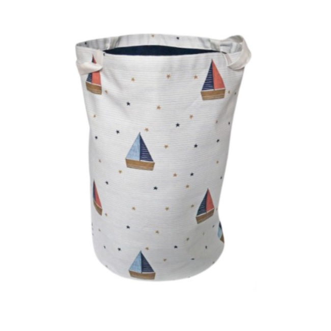 Opvouwbare speelgoedmand met maritieme look. Stevig, wasbaar en perfect voor een rustige en nette kinderkamer. Lees meer.
